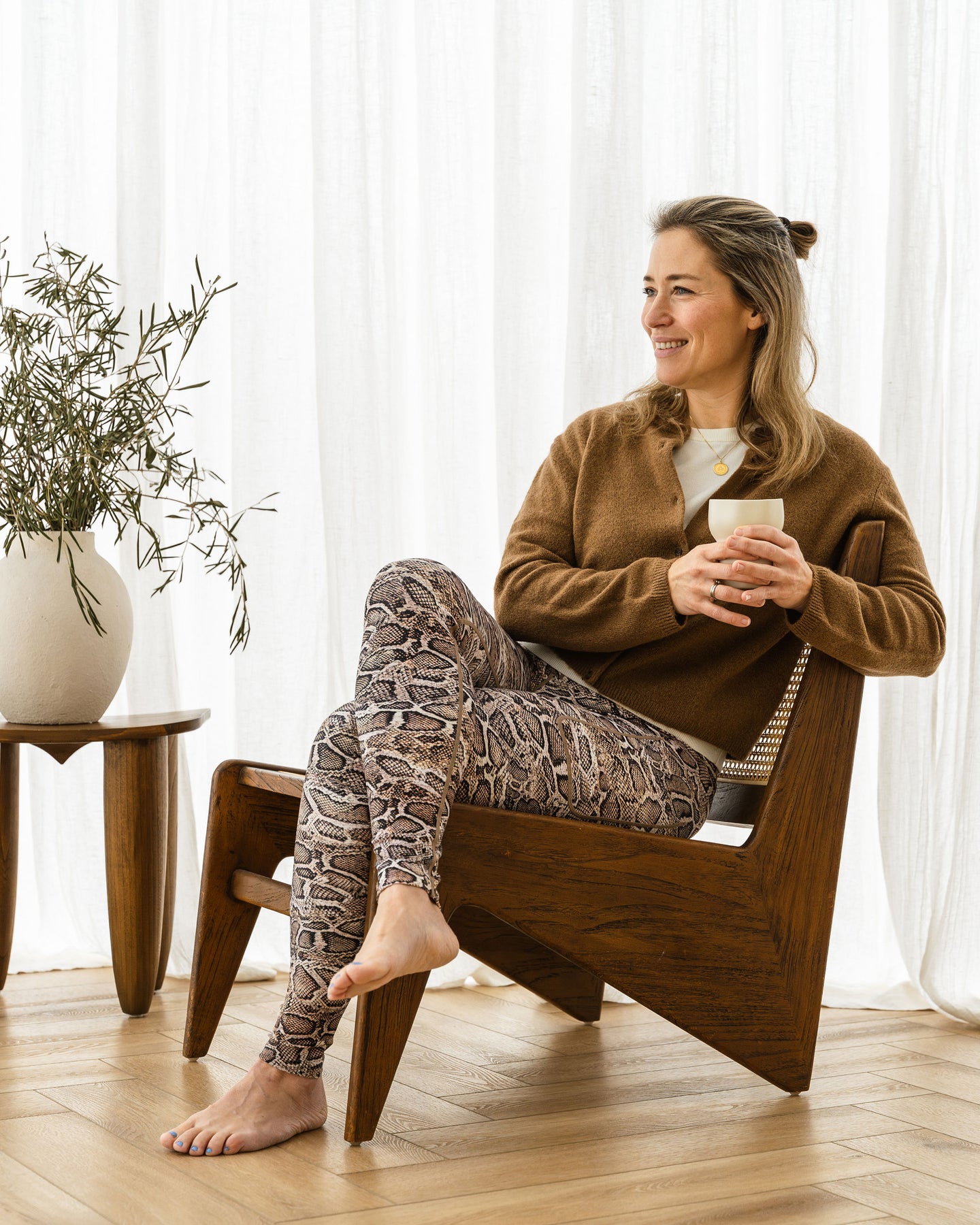 Onze leggings hebben een brede, hoge taille met een dun elastiek, wat ervoor zorgt dat ze niet naar beneden vallen als je beweegt.