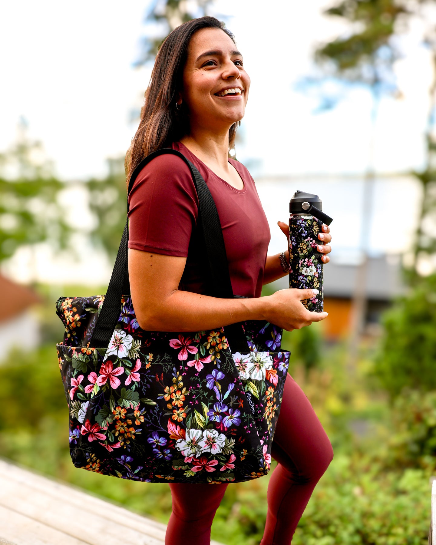 De Amelia Bag is gemaakt van gerecycled polyester en heeft een waterafstotende coating, zodat je spullen droog blijven – zelfs tijdens een regenbui. Met twee grote zijvakken hebben we ervoor gezorgd dat je eenvoudig bij je Luna waterfles en andere benodigdheden onderweg kunt.
